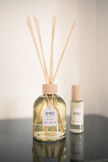 Dévissez délicatement la bague en bois et retirez l’opercule protecteur. Plongez les bâtonnets en rotin dans le flacon, en les disposant en bouquet. Ils absorberont le parfum par capillarité et diffuseront dans l’air un sillage continu, élégant et enveloppant. Pour raviver l’intensité de diffusion, retournez les tiges une à deux fois par semaine, selon vos envies.